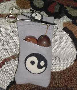 The Snip-n-Tuck Keeper has a Velcro attachment. The magnets and Velcro are strong One magnet goes below the backing and one on top. enough to hold a few hooks inside ~ ~ ~ ~ ~ ~ ~ ~ ~ ~ ~ This Ying and Yang design is another version of the Snip-n-Tuck which is not removable with Velcro. Again there is a piece of canvas sewn in the bottom so that the hooks cannot penetrate thru. If you would like pictures of other designs in stock, please write me.